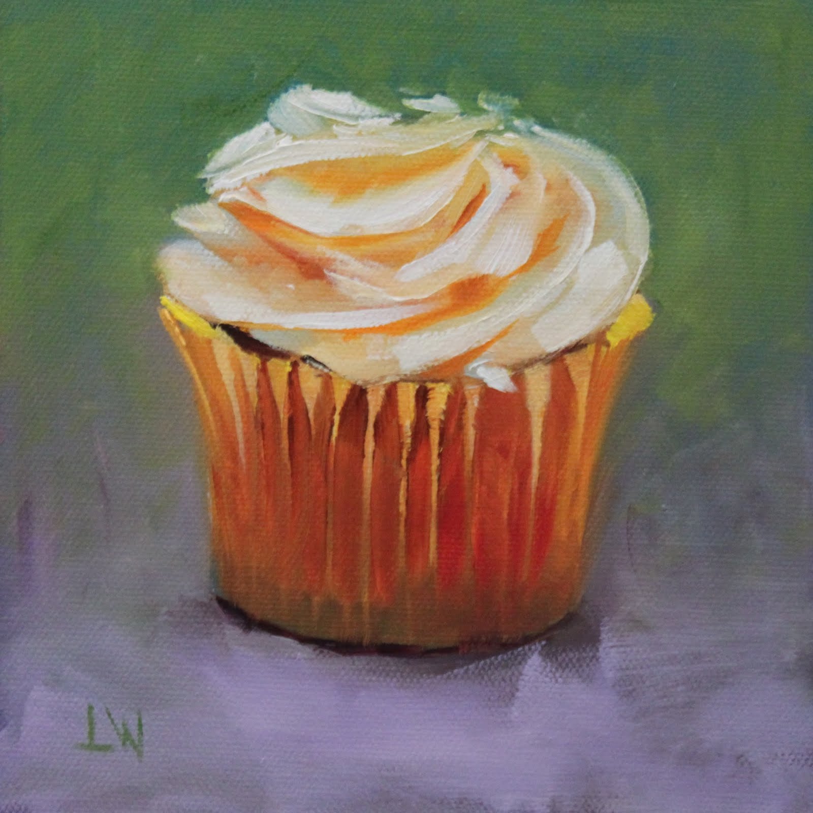 At home trying out my workshop lessons. This cupcake was in celebration of a classmates birthday. Before I chomped it down, I took a quick photo of it. I did take a bite out of the back but luckily it did not show in the photo. While I was painting it, I was struck by how similar painting frosting is to painting a rose. Never thought about it before!